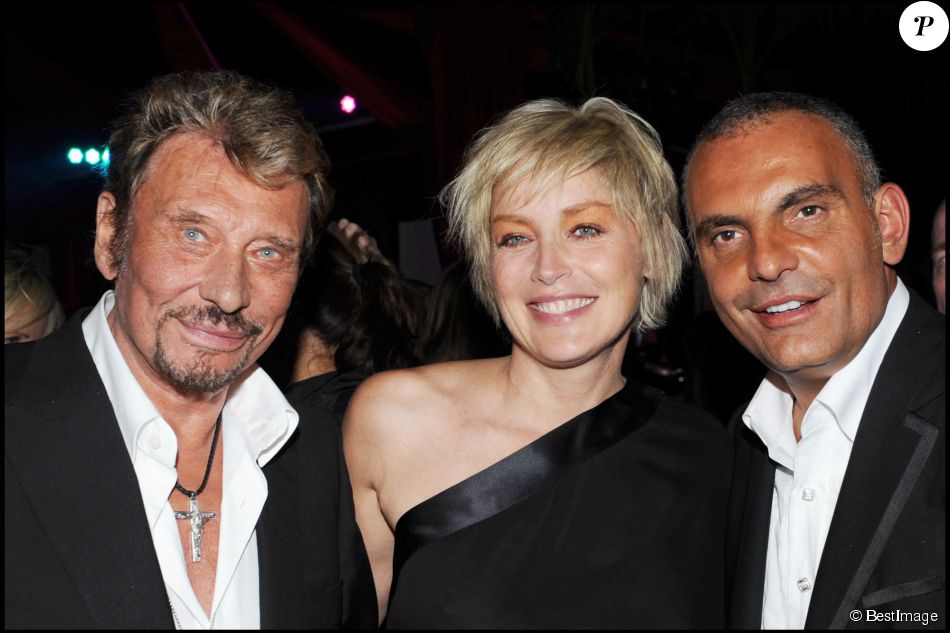Anniversaire de Johnny Hallyday chez son ami, le regretté Christian Audigier, en 2008. Ici, avec Sharon Stone.